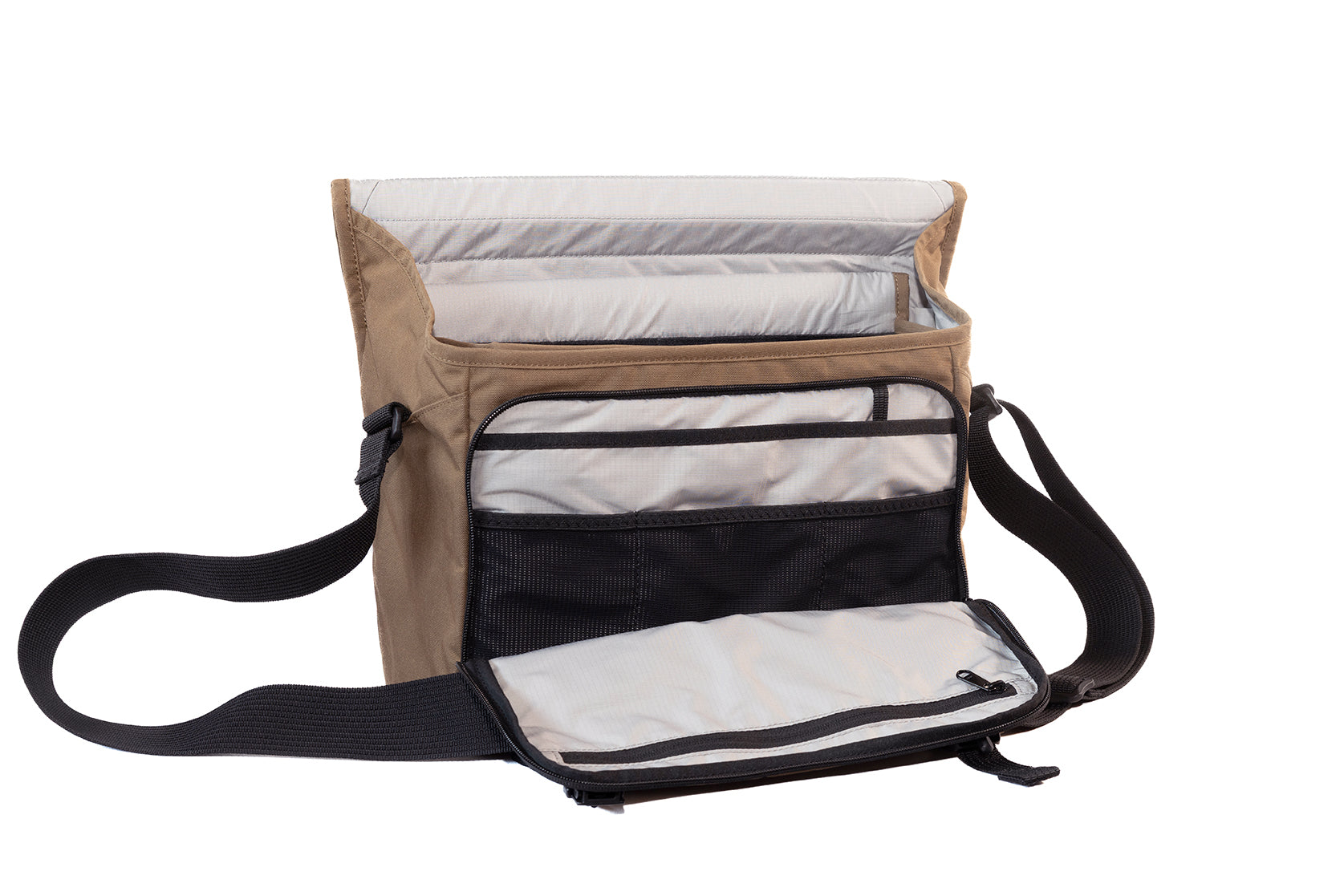 At the heart of the Frontier 16's ingenuity is its versatile 2-in-1 design, featuring a removable, customizable padded insert that transforms the bag on demand. Slip in your camera gear for on-the-go shoots, where it securely cradles a compact DSLR or mirrorless camera, multiple lenses up to 8 inches (20.3 cm) in length, flash units, drones, or action cameras—all organized and protected with precision dividers. When photography takes a backseat, simply pull out the insert to reveal a lightweight messenger perfect for life's essentials: pack in sweaters, snacks, notebooks, gym gear, or whatever the day demands, without sacrificing an ounce of style or space. It's effortless adaptability that keeps you prepared for anything, from dawn patrols to evening commutes.